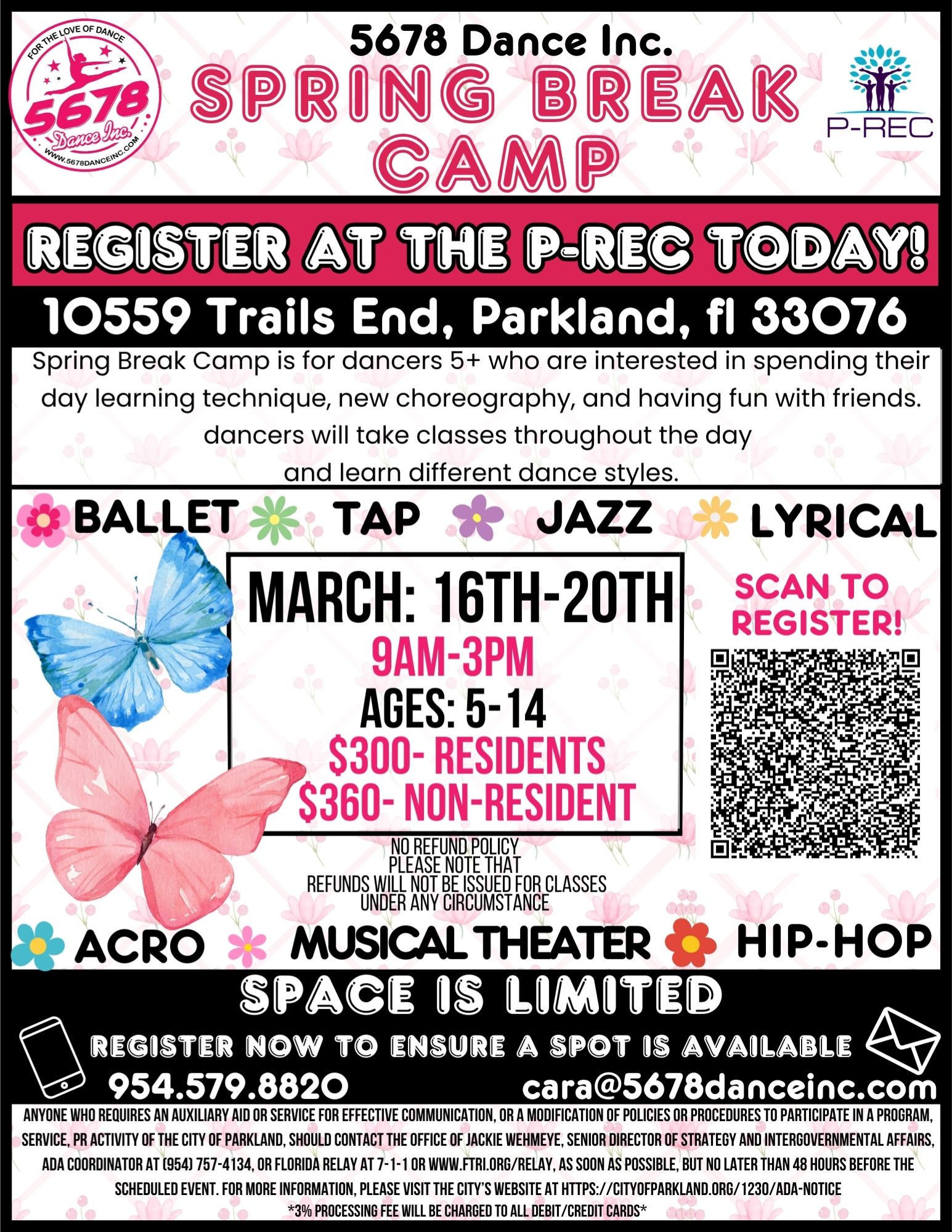 Spring Break Camp is for dancers 5+ who will learn techniques, choreography and have fun with friends.