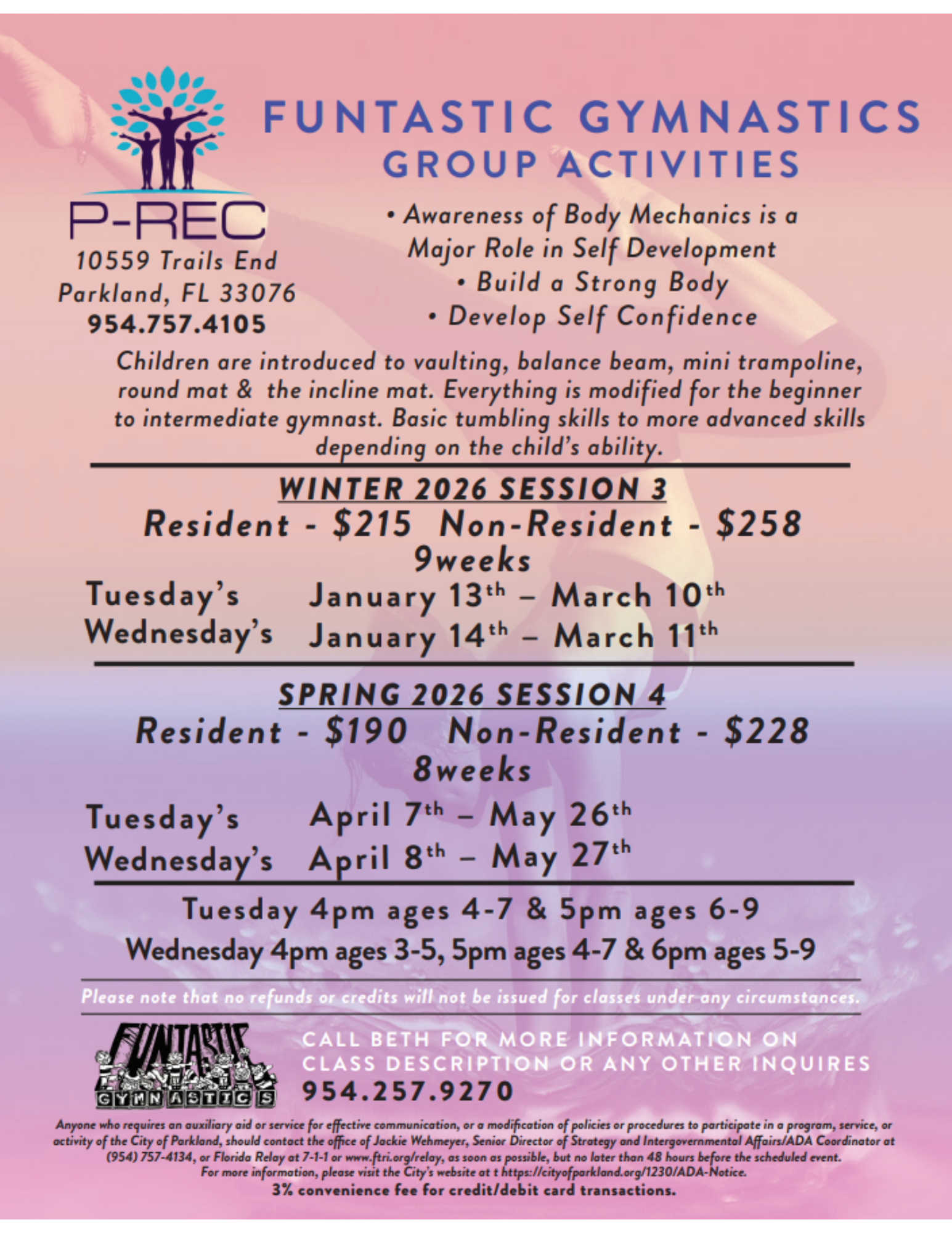 Anyone who requires an auxiliary aid or service for effective communication, or a modification of policies or procedures to participate in a program, service, or activity of the City of Parkland, should contact the office of Jackie Wehmeyer, Senior Director of Strategy and Intergovernmental Affairs/ADA Coordinator at (954) 757-4134, or Florida Relay at 7-1-1 or www.ftri.org/relay, as soon as possible, but no later than 48 hours before the scheduled event.