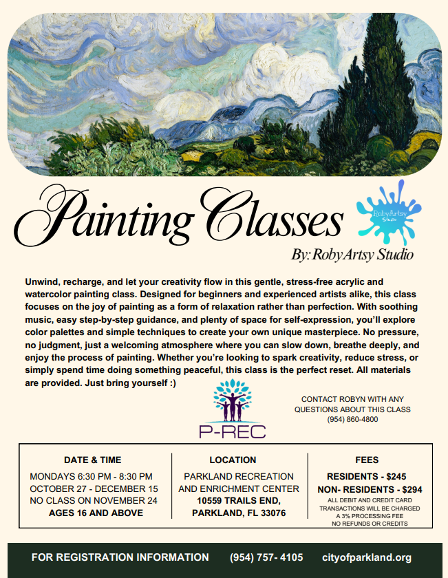 View the Painting Classes by Roby Artsy Studio flyer for details