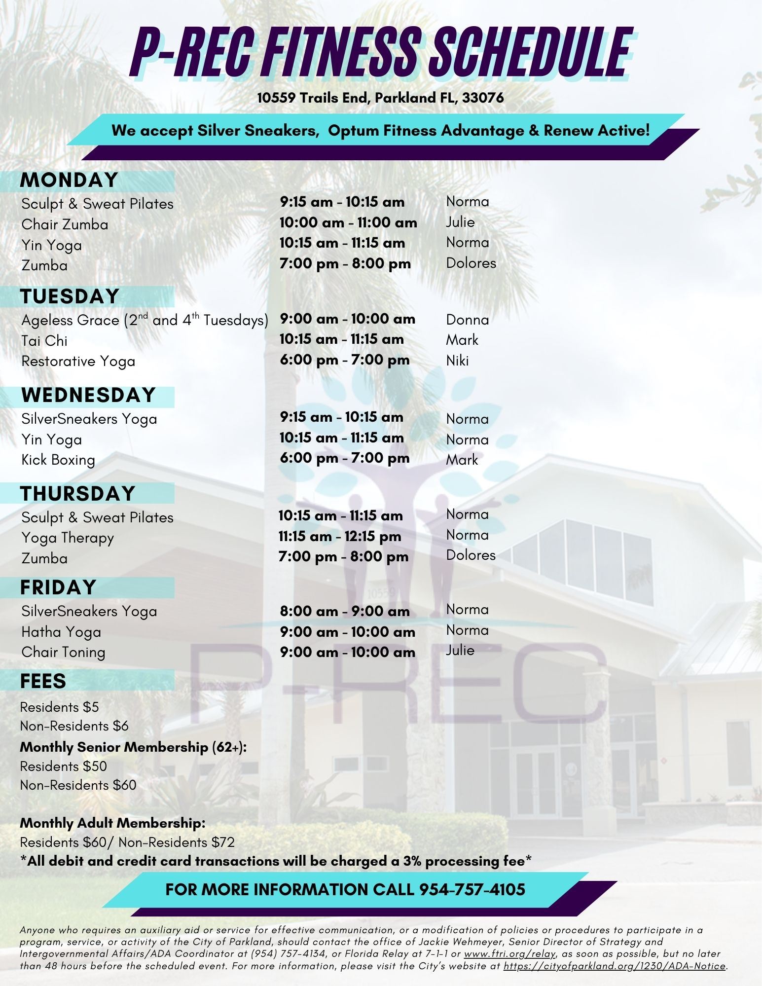 View the P-REC Fitness Schedule flyer for details